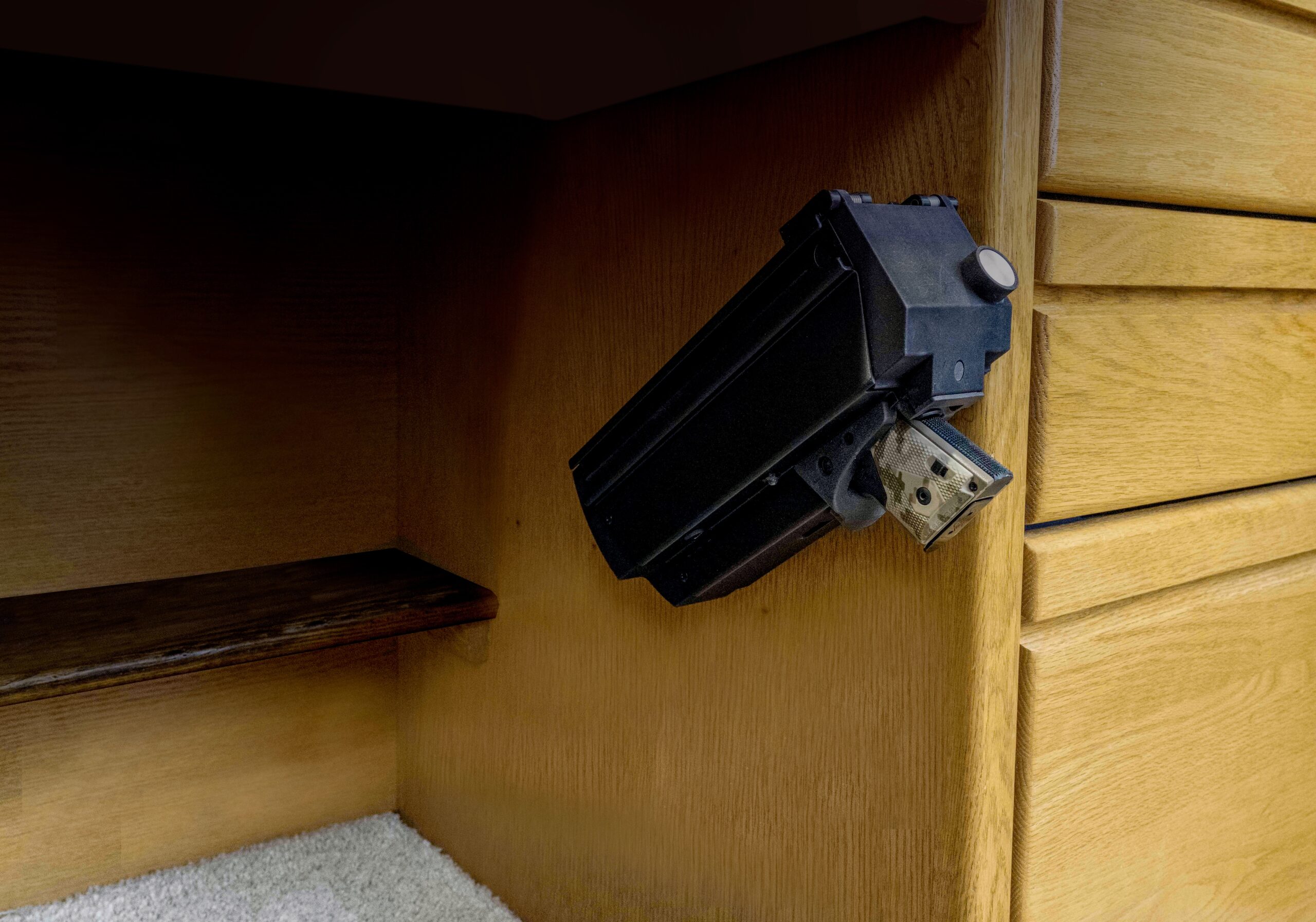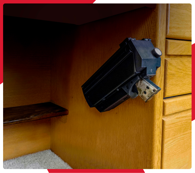 Our Spartan Guardian™ home mounts offer flexible placement options on bedside tables, in closets, or any secure spot you choose. Built for durability, they protect against tampering by children, guests, or intruders while blending seamlessly into your home for quick access when needed.